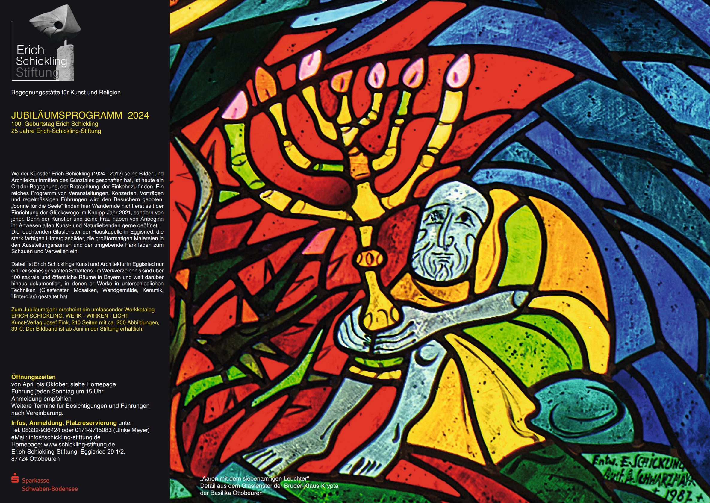 Vom 30. August bis 1. September 2024 lädt die Erich Schickling Stiftung in Ottobeuren zum 23. Eggisrieder Seminar für Musik und Transzendenz ein. In diesem Jahr steht das Thema Jüdische Wurzeln der Musik im Mittelpunkt. Das Seminar bietet ein tiefgehendes Programm mit Konzerten, Vorträgen, Einführungen und Gesprächsrunden. Die Erich Schickling Stiftung, ein Ort voller kultureller und spiritueller Tiefe, setzt mit diesem Seminar ihre langjährige Tradition fort, Musik, Kunst und philosophische Fragen in einem einzigartigen Rahmen zu verbinden.