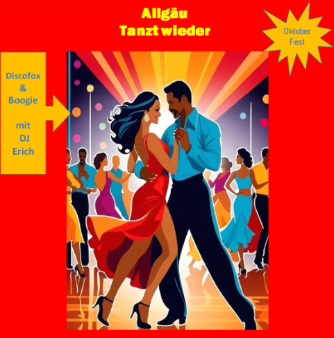 Bei „Allgäu tanzt wieder“ steht die Musik im Zentrum: Tanzbare Klassiker, zeitlose Beats und die passende Atmosphäre schaffen den Rahmen für eine ausgelassene Nacht auf dem Parkett. Die Veranstaltung richtet sich an alle, die sich gerne zur Musik bewegen – ohne Showeffekte, dafür mit klarem Fokus auf das Tanzerlebnis.