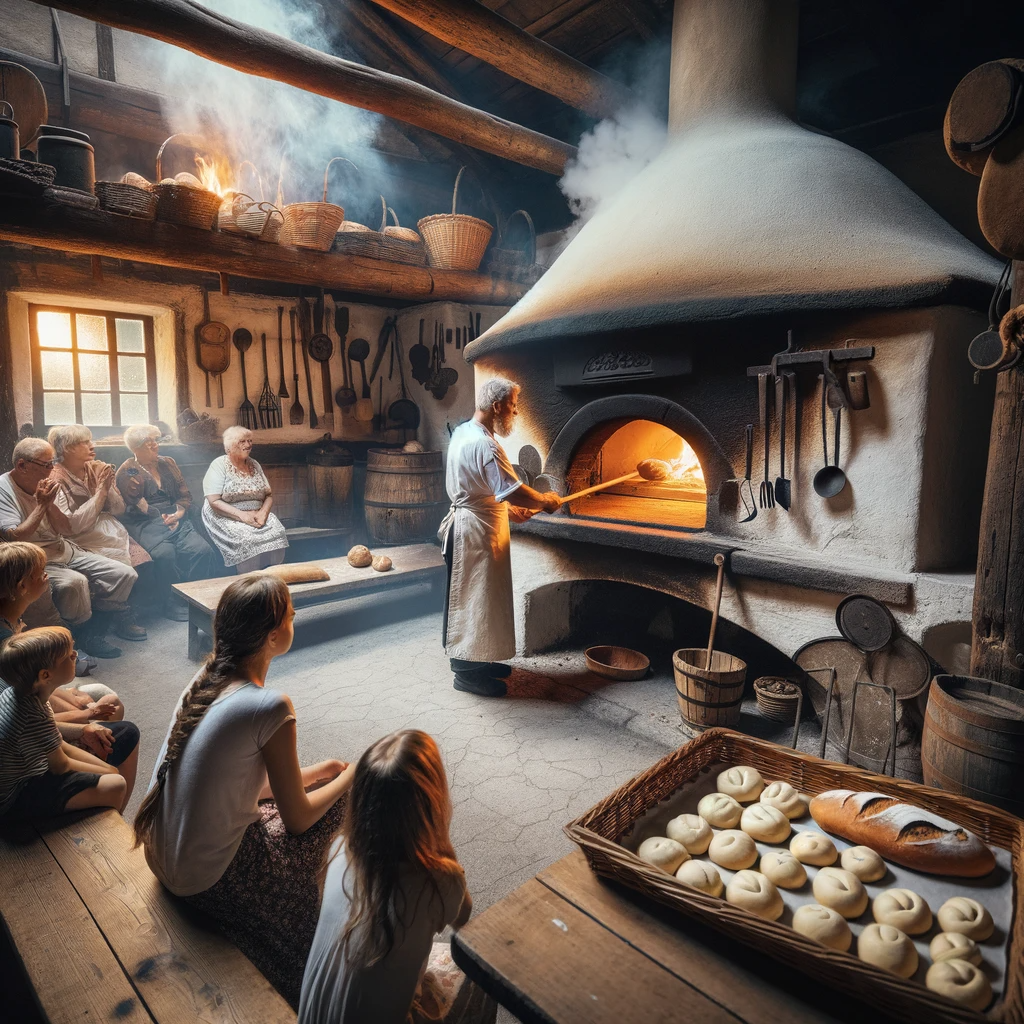 Besucher können beobachten, wie das Gebäck zubereitet und in der Glut des heißen Ofens zu knusprigem Brot wird. Lassen Sie sich vom Geräusch des knackenden Feuers und dem Duft frischen Brotes verzaubern. Für alle, die selbst einmal die Rolle des Bäckermeisters übernehmen möchten, bieten wir spezielle Backkurse an. Diese Kurse sind eine hervorragende Gelegenheit, tiefer in die Fähigkeiten des traditionellen Backens einzutauchen.