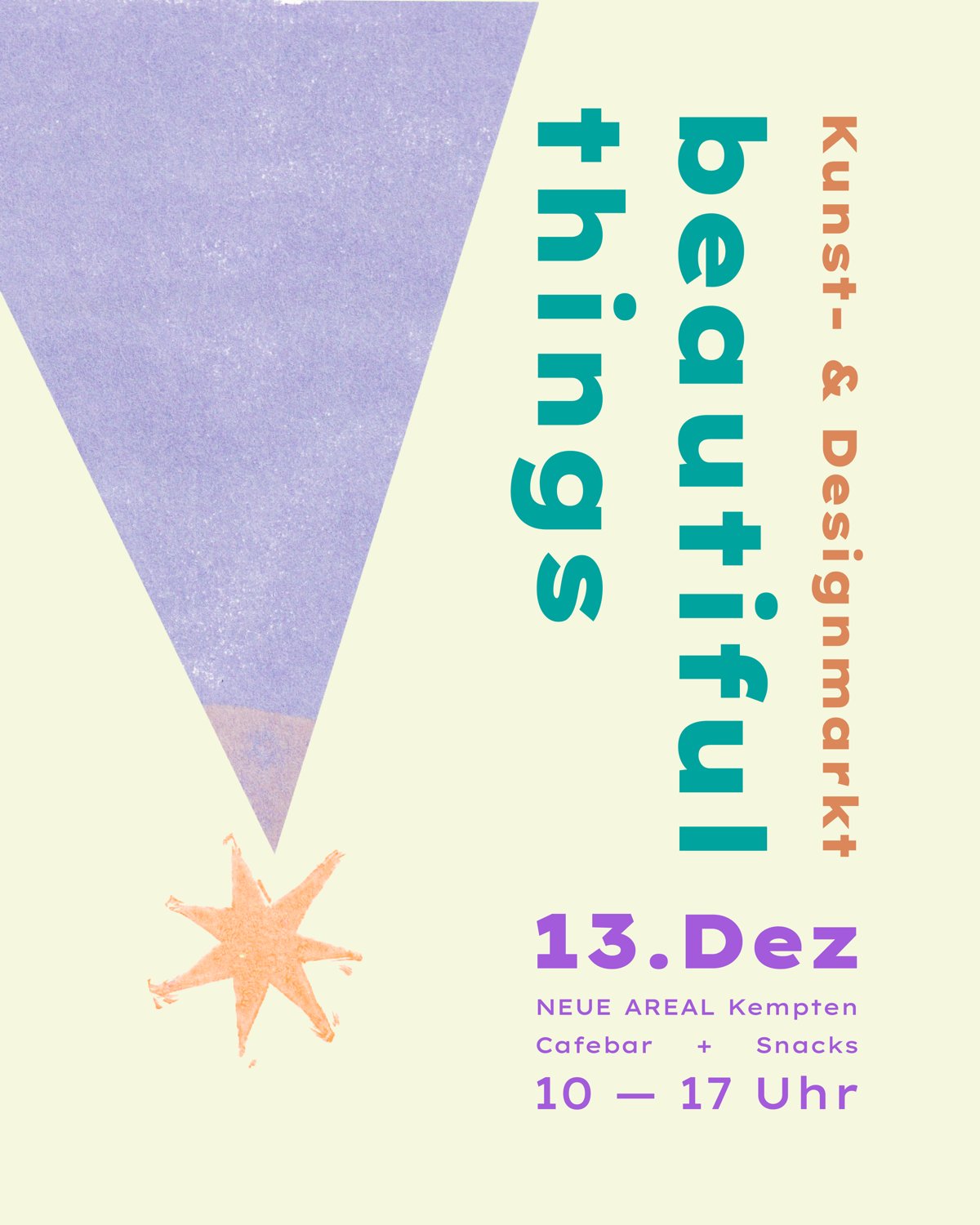 Zwischen winterlichem Grau und vorweihnachtlicher Geschäftigkeit öffnet sich im NEUE AREAL in Kempten ein Raum für das Schöne, Handgemachte und Inspirierende. Der Beautiful Things Kunst- & Designmarkt in Kempten feiert am Freitag, den 13. Dezember 2025, seine Premiere – und lädt von 10 bis 17 Uhr zum Entdecken, Schlendern und Verweilen ein. 🎨🧶✨