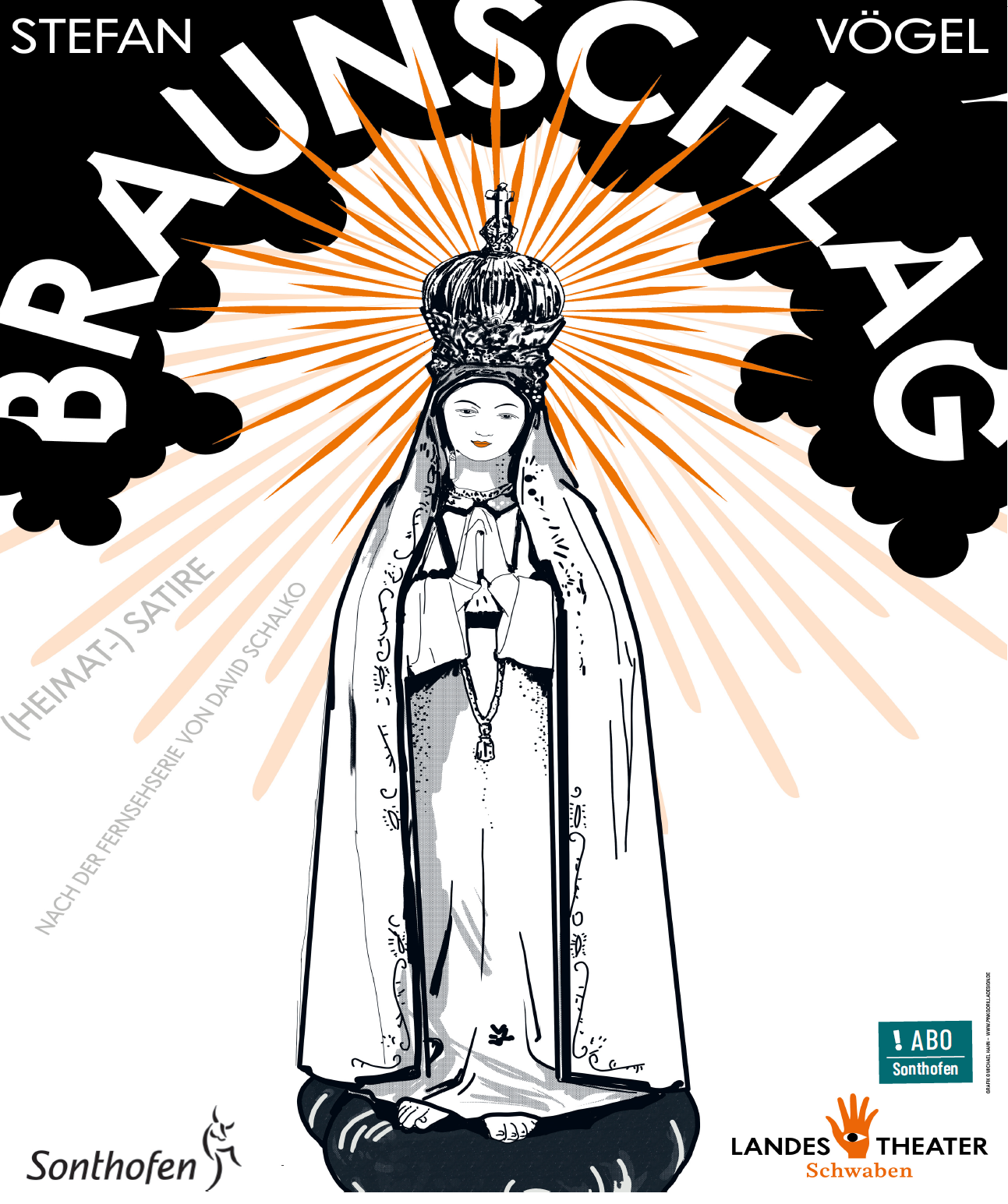 Wenn aus Verzweiflung ein Wunder wird – und aus einem kleinen Dorf ein absurdes Welttheater: Am Dienstag, den 28. April 2026, zeigt die Kulturgemeinschaft Oberallgäu e.V. in Kooperation mit dem Landestheater Schwaben die aberwitzige Heimatgroteske „Braunschlag“ im Haus Oberallgäu in Sonthofen. Beginn ist um 20:00 Uhr. Die Theaterfassung von Stefan Vögel, basierend auf dem gleichnamigen Fernsehfilm von David Schalko, ist eine ebenso scharfe wie komische Abrechnung mit Kleinstadtpolitik, Provinzpathos und spiritueller Geschäftstüchtigkeit.