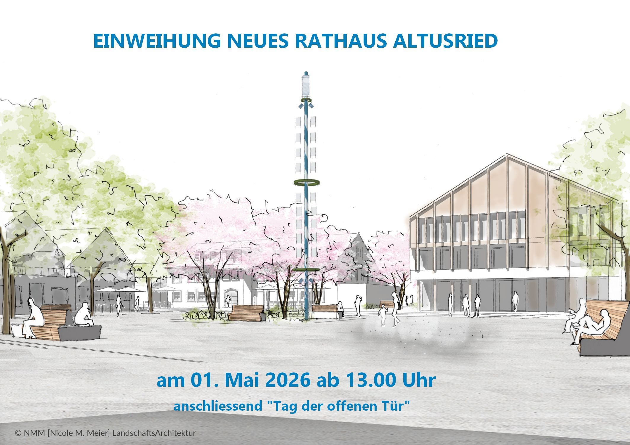 Einweihung Rathausplatz Altusried findet am Freitag, 1. Mai 2026, statt und beginnt um 13:00 Uhr mit der Segnung des neuen Rathauses sowie der offiziellen Einweihung des Rathausplatzes. Der Ort, das Zentrum von Altusried, wird dabei zur Bühne für eine Veranstaltung, die bewusst zwischen feierlichem Rahmen und offener Begegnung vermittelt. Der neue Rathausplatz zeigt sich erstmals in seiner fertigen Form – als Treffpunkt, als Durchgangsort und als Raum für Austausch 🎶🏡