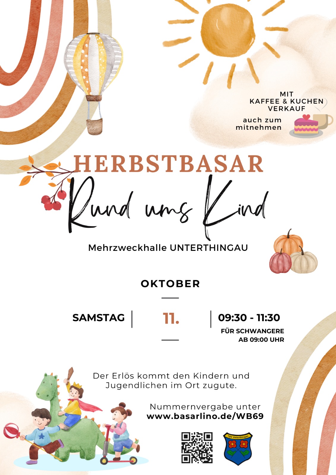In der Mehrzweckhalle Unterthingau öffnet am Samstag, 11. Oktober 2025, von 9.30 bis 11.30 Uhr wieder der beliebte Herbstbasar „Rund ums Kind“ seine Türen. Schwangere haben bereits ab 9.00 Uhr die Möglichkeit zum Einlass. Der Basar ist seit Jahren ein fester Termin im Kalender vieler Familien aus der Region, denn er vereint Nachhaltigkeit, Gemeinschaft und eine große Auswahl an Kinderartikeln.
