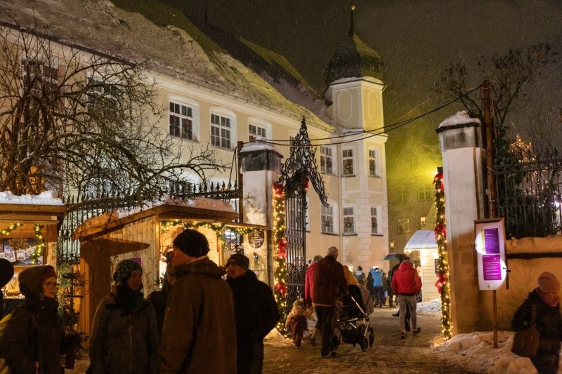 Der rote Teppich im Schlosshof weist den Weg zu liebevoll geschmückten Holzhütten, in denen regionale Kunsthandwerker:innen ihre Waren anbieten: von handgedrehten Glasperlen über Bienenwachsprodukte bis zu Kräutersalzen und ätherischen Ölen. Kulinarisch lockt die Schlossweihnacht mit traditioneller Dinnete aus dem Holzofen, finnischem Flammlachs im Tipi und wärmendem Glühmost aus den Streuobstwiesen des Allgäus. 🕯️🍷🍽️