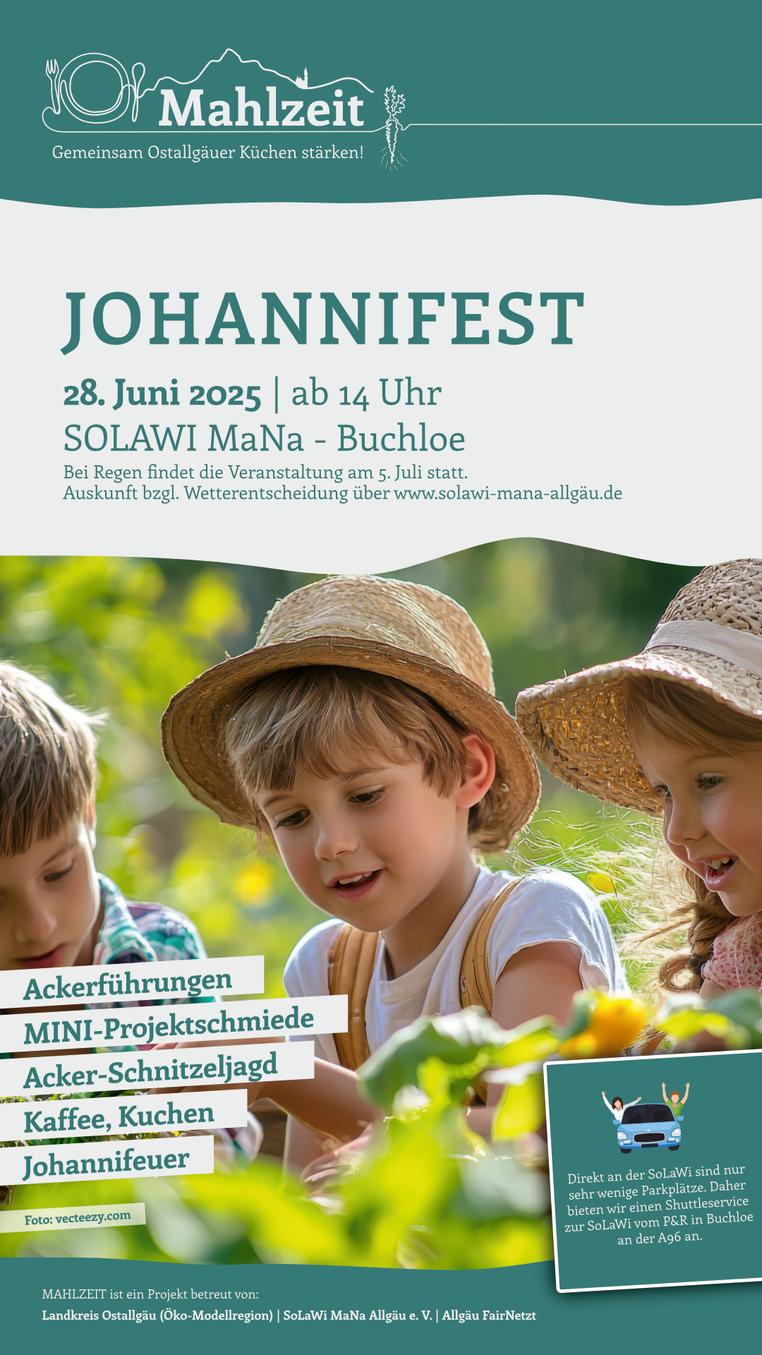 ☔ Bei Regen wird das Johannifest auf den 5. Juli 2025 verschoben. Die Entscheidung hierzu wird rechtzeitig auf www.solawi-mana-allgaeu.de bekannt gegeben.