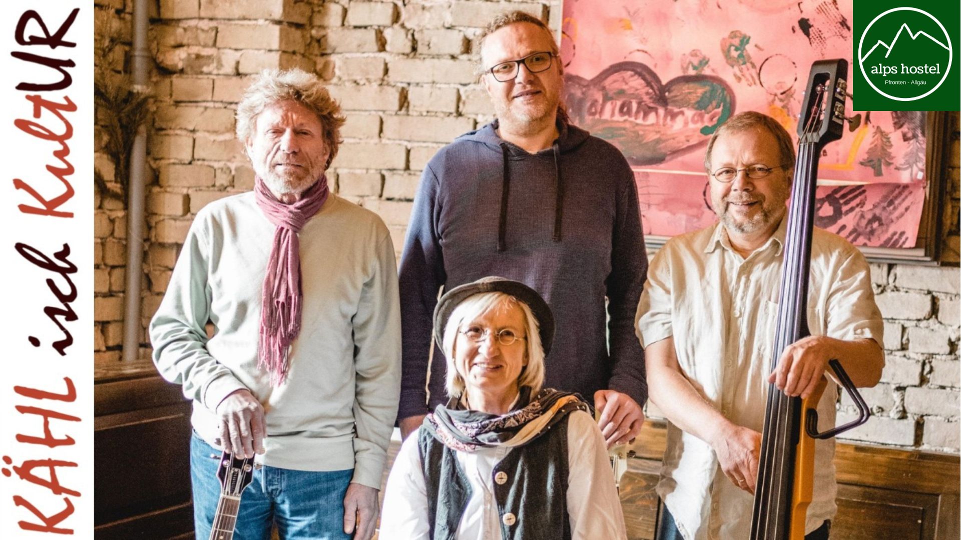 Am Samstag, 10. Oktober 2026, ist KÄHL live im Alps Hostel Pfronten zu erleben 🎶. Beginn ist um 20:00 Uhr, der Einlass startet ab 18:00 Uhr. Früh kommen lohnt sich, denn wie bei allen Konzerten im Alps Hostel gibt es bereits vorab Drinks und Snacks in entspannter Atmosphäre 🍻. Der Abend ist Teil der etablierten Konzertreihe des Hauses und verspricht einen intensiven, musikalisch abwechslungsreichen Live-Auftritt.