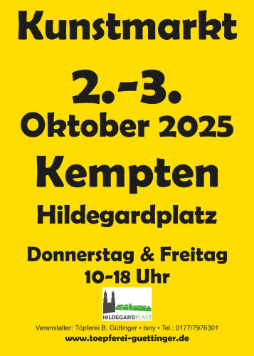 Vor der imposanten Kulisse der Basilika St. Lorenz verwandelt sich der Hildegardplatz in Kempten Anfang Oktober in einen Treffpunkt für Kunst- und Handwerksliebhaber. Der Markt bietet eine breite Palette kunsthandwerklicher Erzeugnisse – von Keramik über Schmuck und Holzarbeiten bis hin zu Glas- und Metallkunst. Die zentrale Lage in der historischen Altstadt verleiht dem Markt eine besondere Atmosphäre.