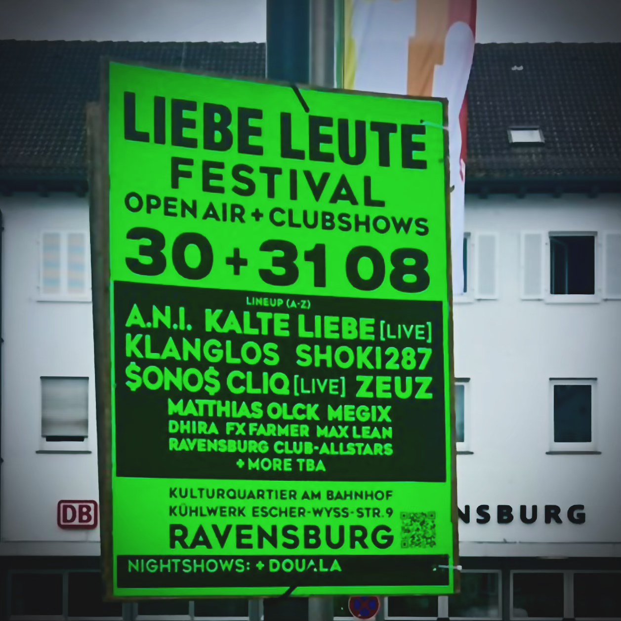 Am Freitag, den 30. August, und Samstag, den 31. August 2024, feiert das Liebe Leute Festival seine Premiere in Ravensburg. Dieses Event kombiniert Open-Air-Atmosphäre und Clubshows und bietet ein vielseitiges musikalisches Erlebnis.
