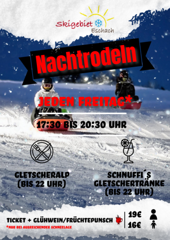 Das Nachtrodeln an den Schwärzenliften in Eschach findet jeden Freitag im Winter statt – jeweils von 17.30 bis 20.30 Uhr. Voraussetzung ist eine ausreichende Schneelage, über die aktuell informiert wird. Sobald die Bedingungen passen, heißt es: Licht an, Rodel raus, Abfahrt frei. Die Veranstaltung richtet sich an Familien, Gruppen von Freundinnen und Freunden sowie an alle, die den Winter bewusst auch nach Einbruch der Dunkelheit erleben möchten 🌌🛷.
