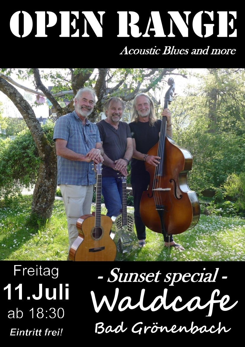 Am Freitag, den 11. Juli, tritt die Band Open Range im Rahmen der Sunset-Reihe im Waldcafé Bad Grönenbach auf. Ab 18:30 Uhr erklingen akustische Gitarren, Bluesharp und Kontrabass unter freiem Himmel – ein Konzertabend, der das musikalische Spektrum von Delta-Blues bis Folkrock stilvoll vereint. Der Eintritt ist frei.