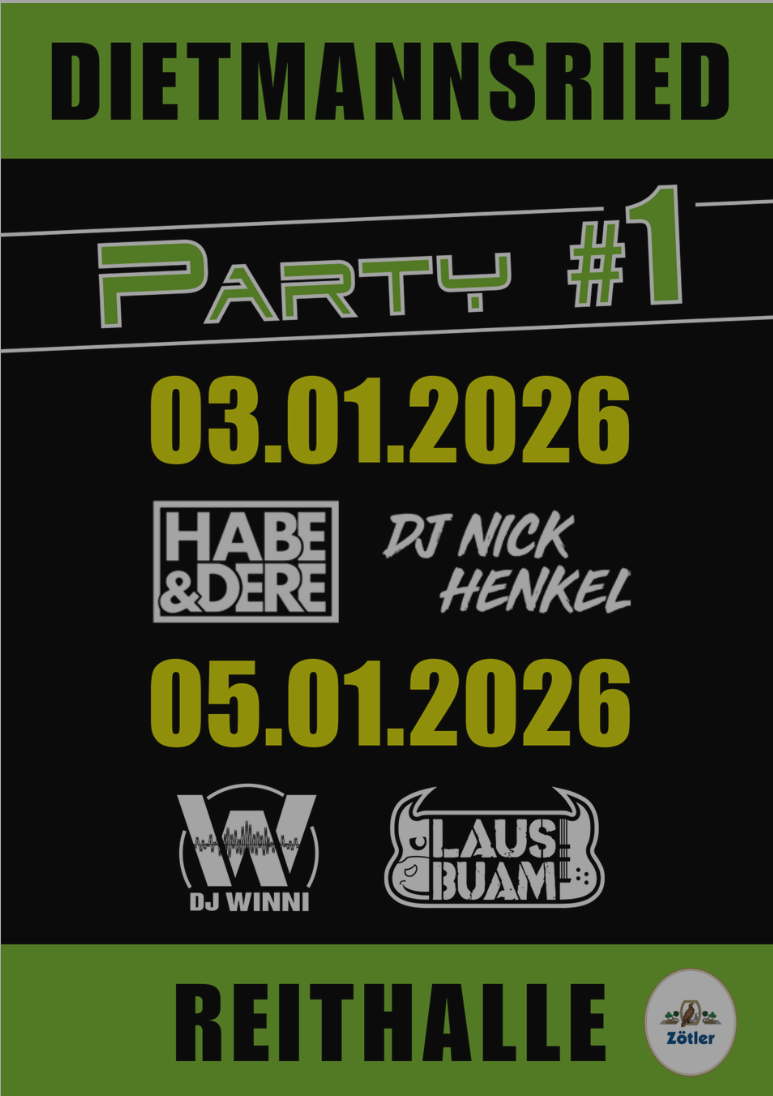 Mit der PARTY #1 startet das Allgäu schwungvoll, laut und ausgelassen ins neue Jahr 2026. Anfang Januar öffnet die Reithalle in Dietmannsried erneut ihre Tore für eines der traditionsreichsten und zugleich beliebtesten Partyformate der Region. Als erste große Veranstaltung des Jahres ist die PARTY #1 für viele Feierfreudige längst ein fixer Termin im Kalender – ein Treffpunkt für Freunde, Musikfans und Nachtschwärmer aus dem gesamten Allgäu und darüber hinaus.