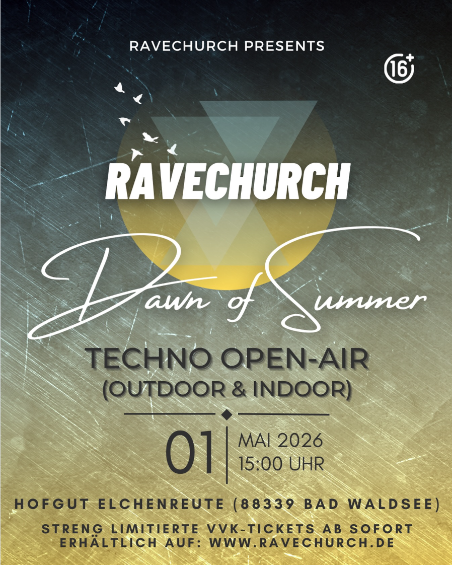 - 📌 Was? Techno Open-Air & Indoor Event „Ravechurch – Dawn of Summer“