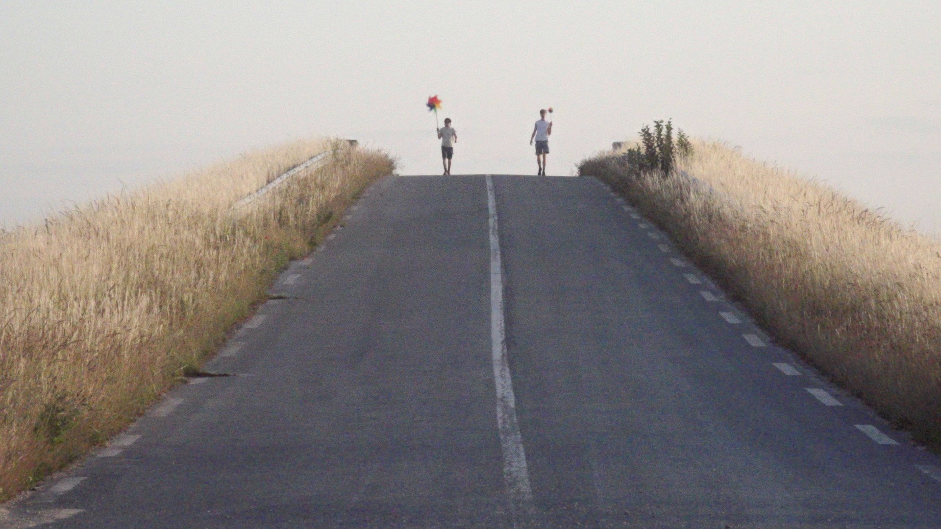 Ein Feldweg zwischen Stoppelfeld und Horizont, zwei Gestalten im Rückzug – das Standbild allein öffnet einen Raum für Fragen: Wer verlässt hier wen? Und was bleibt zurück? Die Videoarbeit Running away is easy, it’s the leaving that’s hard des Künstlerpaars Pierre-Yves Delannoy und Mauricio Hölzemann setzt genau hier an – bei der emotionalen Topografie des Abschieds. 🎥🛤️🧳