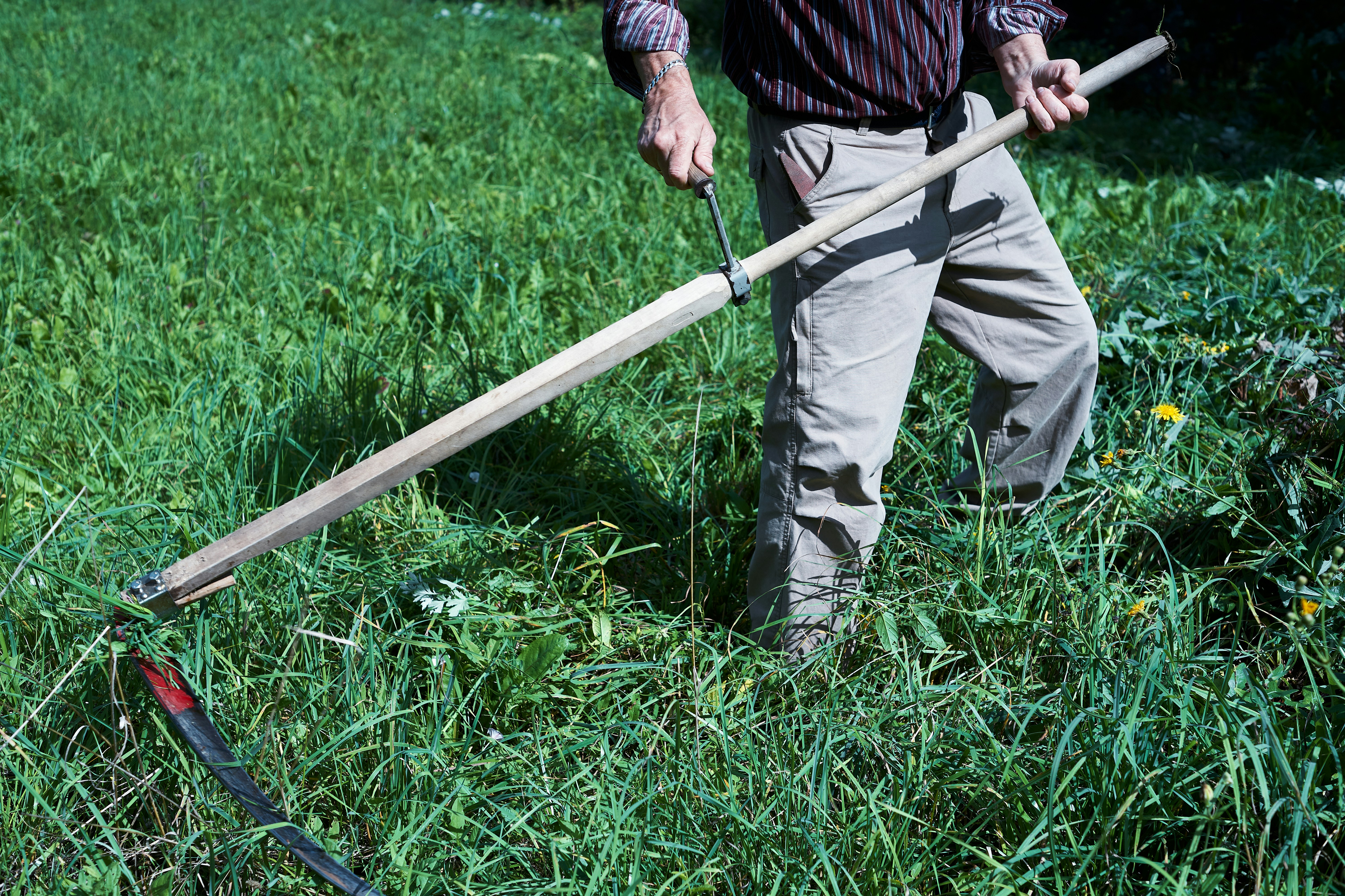 Der Umgang mit der Sense ist nicht nur eine Freude, sondern auch eine wertvolle Kulturtechnik. Die Sense arbeitet leise, schont Insekten und benötigt keinen fossilen Treibstoff.