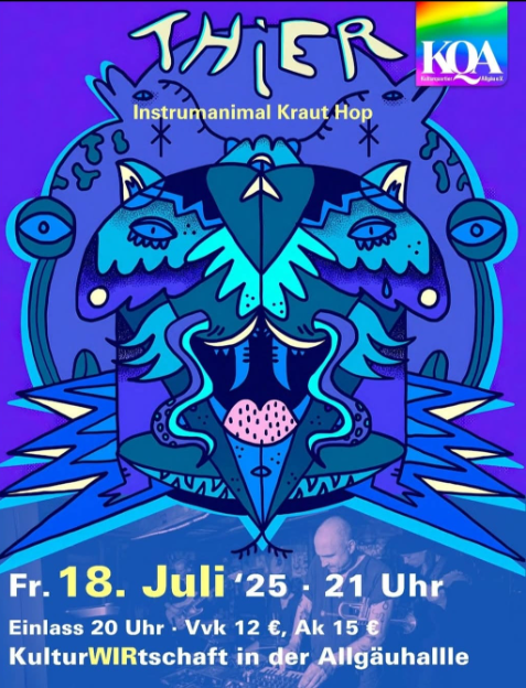 In einer Zeit, in der kulturelle Vielfalt und alternative Lebensweisen immer noch mit Vorurteilen und Ablehnung konfrontiert sind, ist die Förderung von queeren Kulturen und subkultureller Vielfalt von großer Bedeutung. Projekte wie die KulturWIRtschaft in Kempten tragen dazu bei, diese Vielfalt sichtbar zu machen und Räume für Selbstentfaltung und künstlerischen Ausdruck zu schaffen. Die Musik von THIER, die mit ihrem experimentellen Sound Grenzen zwischen Genres verschwimmen lässt, passt perfekt in dieses Konzept. Ihr Auftritt kann nicht nur als musikalisches Statement, sondern auch als politische Botschaft verstanden werden – eine Botschaft für Toleranz, Offenheit und Akzeptanz gegenüber allen Formen von Kunst und Lebensweise. Indem sie verschiedene Stile und Einflüsse vereinen, fordern THIER das Publikum auf, über Konventionen und Normen hinauszudenken und sich auf neue, ungewohnte Klangerlebnisse einzulassen. Das Konzert in der Allgäuhalle wird somit nicht nur ein musikalisches Highlight, sondern auch ein Beitrag zur Förderung von Diversität und kultureller Teilhabe.