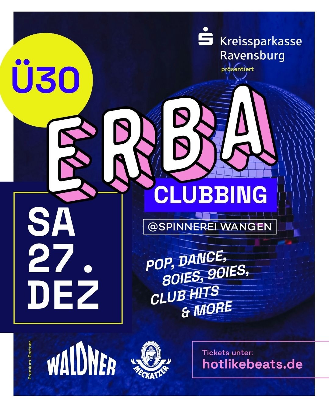 Discokugel, Clubbeats und ein Publikum, das weiß, wie man feiert – in der Spinnerei Wangen erlebt die Ü30 ERBA Clubbing in der Spinnerei Wangen am Samstag, den 27. Dezember 2025 ihre zweite Auflage. Nach dem ausverkauften Premierenabend verspricht auch dieser Termin eine stilvolle Clubnacht mit vertrauten Sounds und zeitgemäßem Groove.