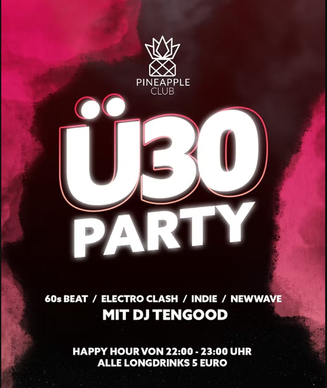 Der Pineapple Club Füssen wird zur Bühne für alle, die wissen, wie man jenseits der Dreißig stilvoll feiert. Bei dieser Ü30 Veranstaltung treffen tanzbare Beats auf ein elegantes Ambiente, und die Nacht verspricht genau das richtige Maß an Energie, Nostalgie und guter Gesellschaft. DJ Tengood serviert einen abwechslungsreichen Sound-Mix aus 60s Beat, Indie, New Wave und Electro Clash – tanzbar, zeitlos und garantiert nichts von gestern.