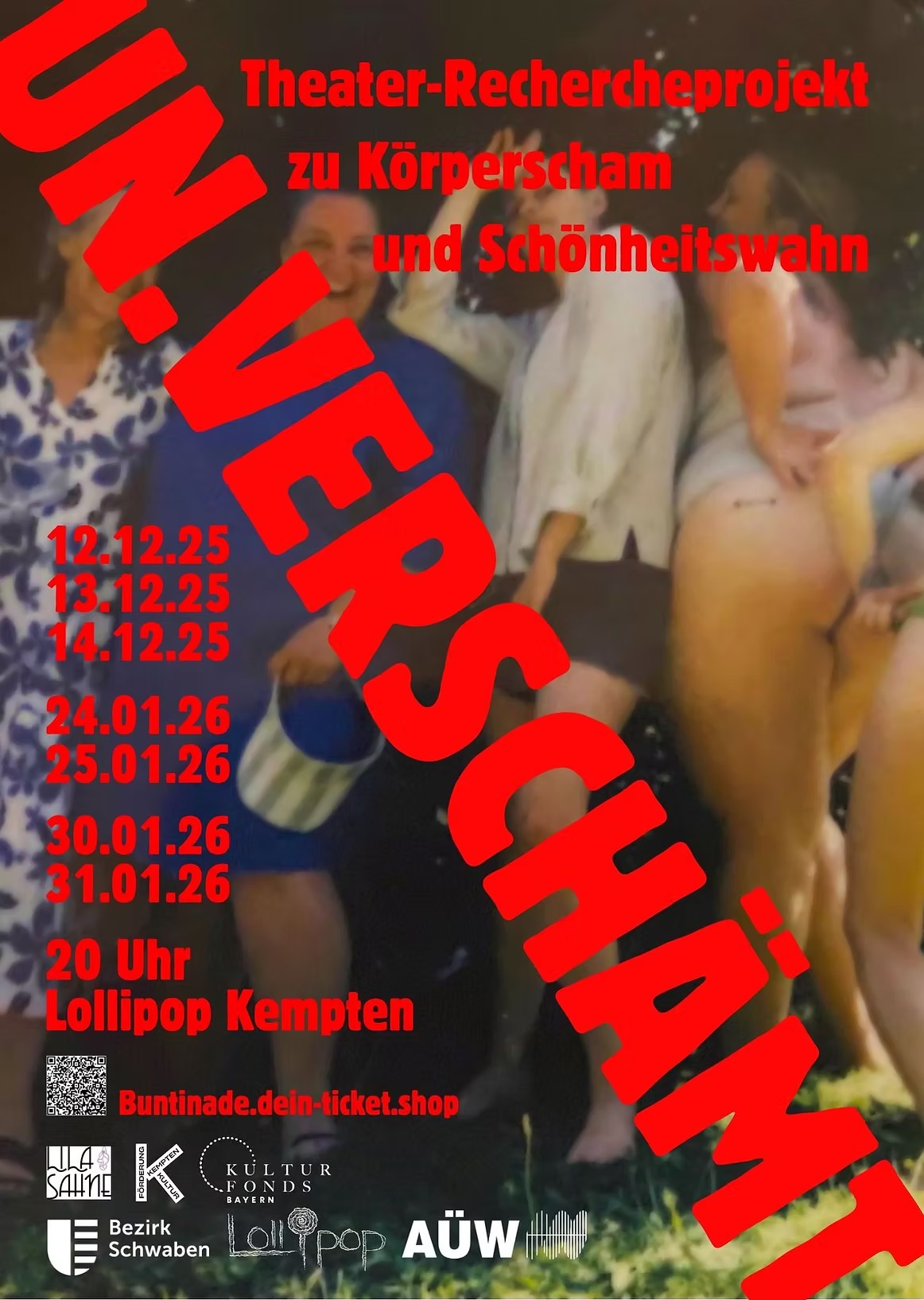 UN.VERSCHÄMT Theater im Lollipop in Kempten feierte seine Premiere bereits am 12. Dezember 2025 an diesem Ort. Eine weitere Aufführung ist für den 20. Februar 2026 im Stadttheater Kaufbeuren angekündigt. Die Vorstellung am 14. Februar fügt sich damit in eine Reihe von Aufführungen ein, die das Projekt weiterentwickeln und vertiefen 📆🎭.