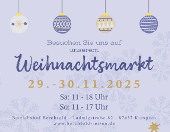 In einer Zeit, in der die Hektik des Alltags oft überhand nimmt und wir uns nach Momenten der Ruhe und Besinnlichkeit sehnen, bietet der Weihnachtsmarkt auf dem Betriebshof Berchtold in Kempten eine willkommene Auszeit. Zwischen Lichterketten und duftenden Leckereien können Besucher:innen innehalten, sich inspirieren lassen und das Gemeinschaftsgefühl der Vorweihnachtszeit genießen. Gerade in einer Zeit, in der persönliche Begegnungen oft zu kurz kommen und die Digitalisierung unser Miteinander verändert, schafft der Markt eine Atmosphäre der Nähe und Wärme.