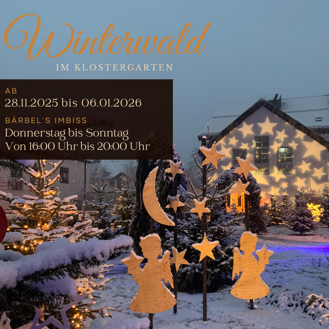 Winterwald im Klostergarten in Immenstadt lädt an vier Tagen pro Woche zum winterlichen Verweilen ein: Donnerstag bis Sonntag, jeweils von 16:00 bis 20:00 Uhr, ist Bärbel’s Imbiss geöffnet und versorgt Spaziergänger:innen und Besucher:innen mit wärmenden Speisen und Getränken. Auf der Karte stehen hausgemachter Punsch, Glühwein, deftige Suppen, Bratwurst – und auf Vorbestellung eine frische Forelle 🧤🍲🍷.