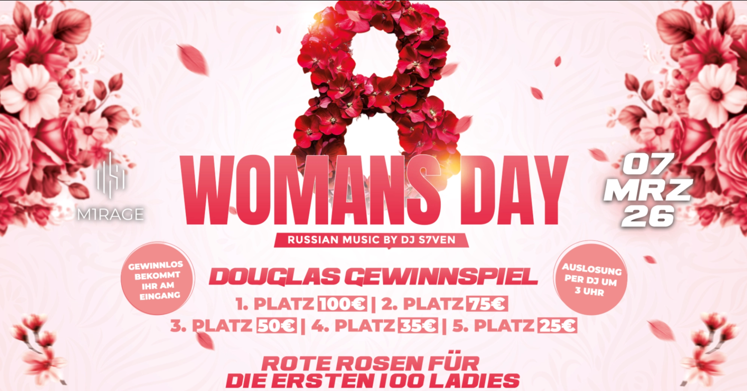 Am 07.03.26 heißt es im Mirage: feiern, tanzen und gemeinsam den Woman’s Day begehen. Für den passenden Sound sorgt DJ S7VEN mit Russian Music und aktuellen Clubtracks 🎧🔥. Der Dancefloor steht dabei klar im Zentrum – ein Ort für Bewegung, Begegnung und lange Nächte.