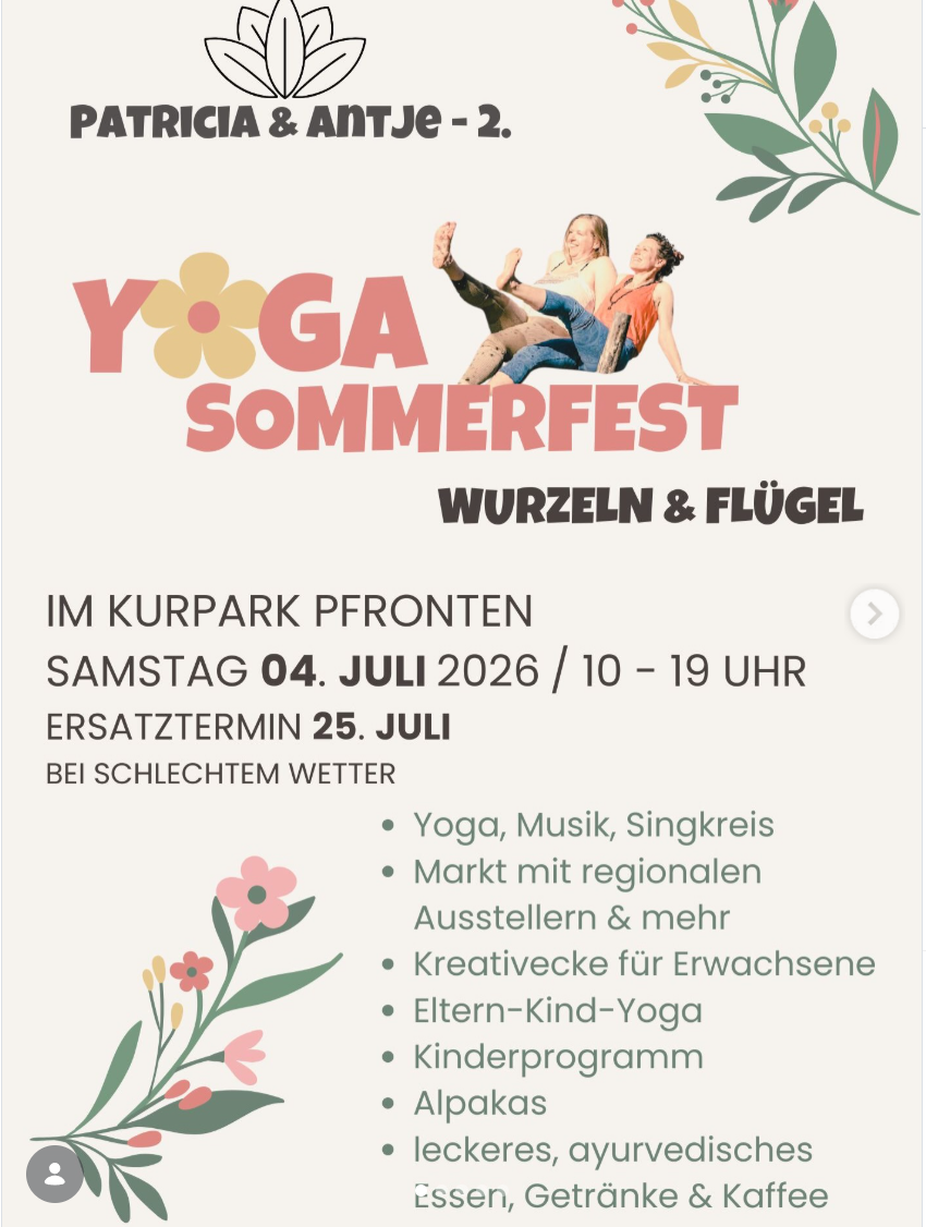 - 🧘♀️ Was: Yoga Sommerfest mit vielfältigem Tagesprogramm